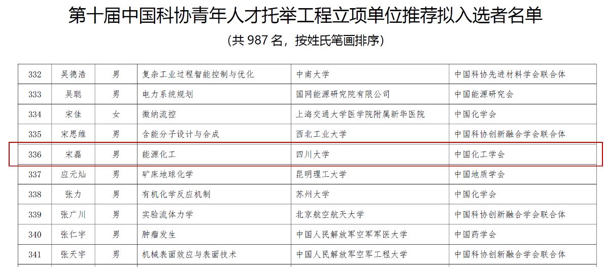 2月26-3月4日,中国科学技术协会对第十届中国科协青年人才托举工程人选名单进行公示,共遴选出第十届中国科协青年人才托举工程人选987名。我院青年教师宋磊副教授入选。