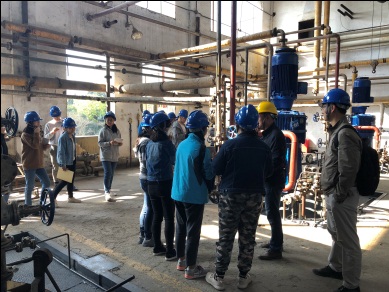 余老师和郭老师首先来到罗江树脂厂,陈建钧、蒋绍志、刘壮、吴振国等四位老师正各自带领小组同学在不同工段梳理工艺流程。余老师在工段现场认真听取了同学们对生产实习认识和感受,询问了同学们的工作和生活情况,指出了实习报告的深度和质量要求。同时,结合化工原理的知识向同学们提问并进行了耐心解答。虽然实习带队老师和厂方已对学生进行了全方位的安全培训,学院更为每个外出实习的师生购买了意外保险,余老师仍特别提醒同学们注意安全、遵守工厂纪律,为川大化工争光。