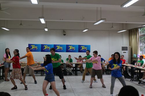 7月14日下午,在江安一教A103, 经过交流营工作组精心布置后,“化工之旅2015”国际交流营活动之中外学生联欢会准时开场了,来自美国西密歇根大学的15位外籍学生,与化工学院本科学生欢聚在一堂,他们身着“化工之旅2015”国际交流营统一体恤,青春的笑脸和青春的气息把江安一教A103装扮得分外艳丽。