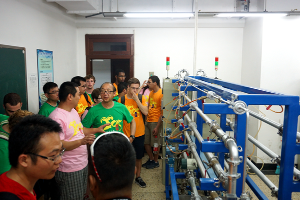 中心吴潘老师作为活动主持代表中心对中外学生一行的到来表示欢迎,在简要介绍了中心的功能情况之后,带领外国学生先后参观了大型实物模型。随后,中心工作人员带领一行人前往流体与传热实验室和公用仪器开放平台。参观过程中工作人员不仅对一些仪器设备的功能进行了演示,也对实验装置的原理和运行情况进行了详细讲解,并与外国学生进行了深入地交流,对他们提出的疑问给予了解答,现场气氛十分活跃。