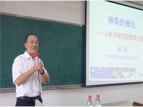 2015年6月23日下午,中国科学院院士、中国科学院大连化学物理研究所所长、我国工业催化学术方向的学术带头人张涛院士一行到我院,在风景如画的江安校区为我院80余名本科生同学带来一场精彩的讲座。陪同张涛院士前来的还有大连化物所研究生部主任熊博晖研究员、研究生部招生主管熊川男副研究员。化工学院院长褚良银教授主持本次讲座。
