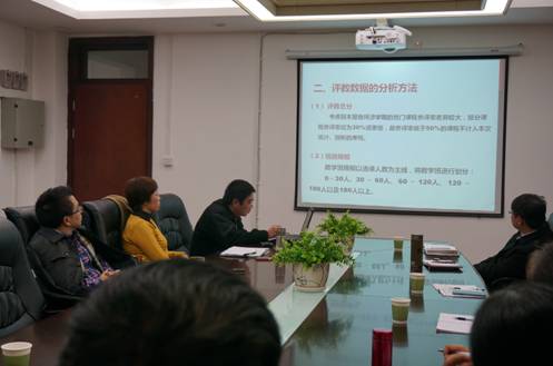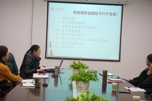 2014年,学院本科教学还在多方面开展了相关质量控制调研工作,在会上,教务办公室章鹏老师就“学生评教结果统计分析及措施”,杨婕老师就“毕业生满意度调查结果统计分析”,班主任助教张川同学和张莉萍同学就“班主任助教工作汇报及经验交流”分别进行了发言。