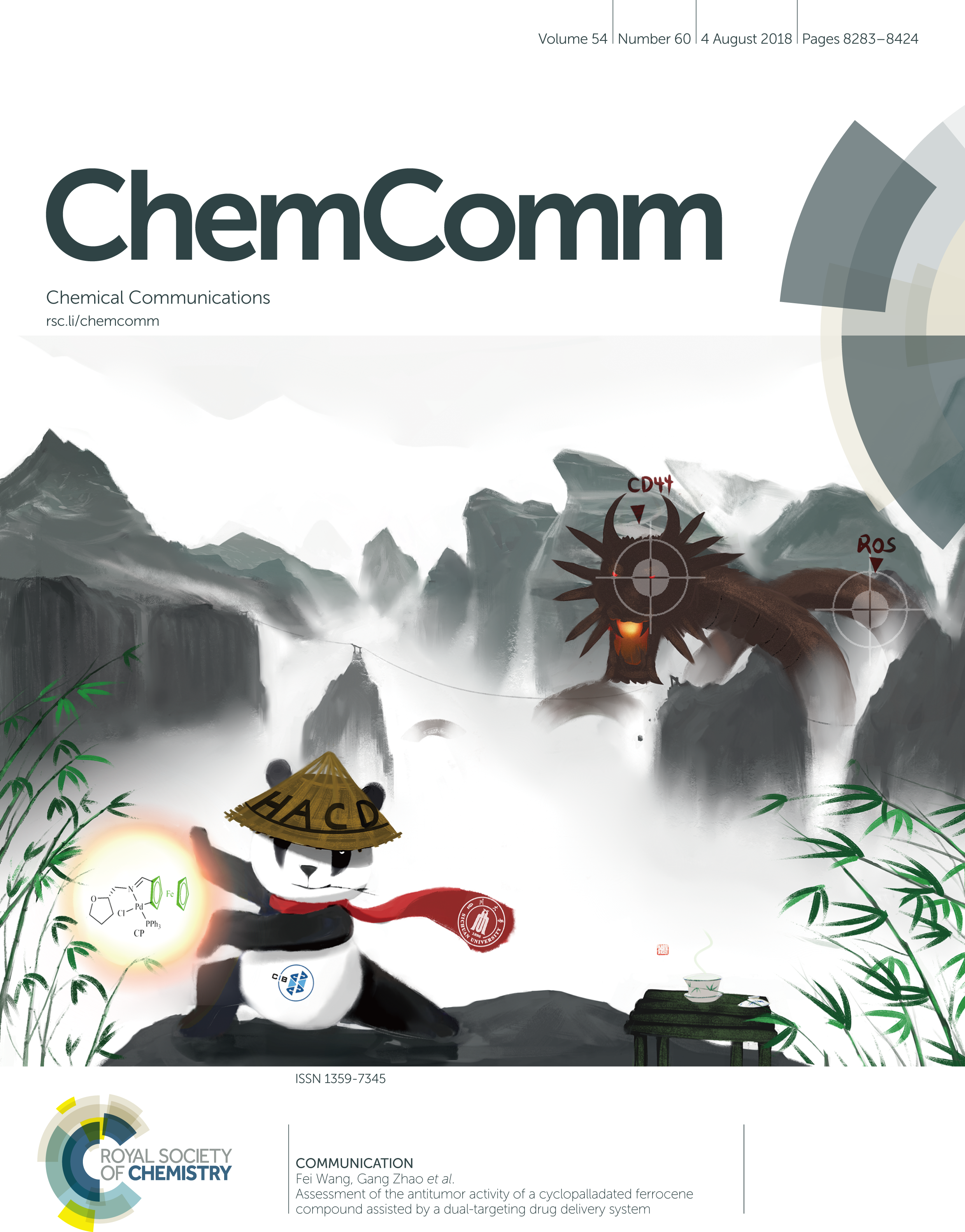 近日,william威廉英国官网化工学院赵刚教授课题组在平面手性二茂铁环钯化合物抗肿瘤活性研究领域取得新突破,设计并制备出了高效低毒且具备靶向性的智能抗肿瘤纳米颗粒。相关成果“Assessment of the Antitumor Activity of a Cyclopalladated Ferrocene Compound Assisted by a Dual-targeting Drug Delivery System”发表在Nature Index期刊《Chem. Commun.》(影响因子6.29),由于其新颖的设计和良好的抗肿瘤活性被该杂志选为封面文章(Front cover)。化工学院2017级博士研究生龚贵东为该论文第一作者,赵刚教授为通讯作者,william威廉英国官网化工学院为该论文的第一作者单位。