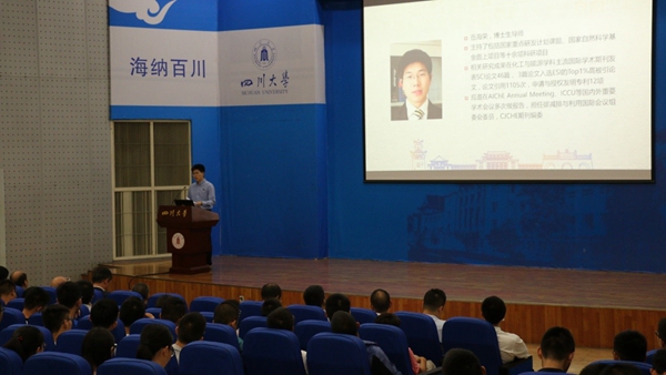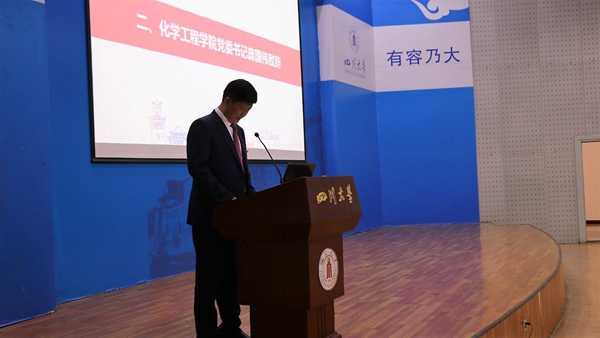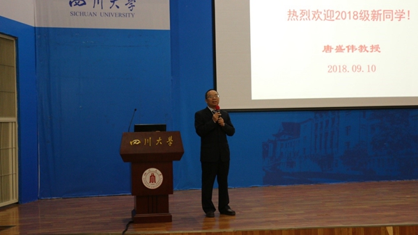 随后化工学院副院长唐盛伟教授为新生们上了第一堂课。唐院长向同学们详细介绍了化工学院的专业分类,并阐述了什么是化工。同时,唐院长就化工与环保、化工与安全两方面帮助同学们更深入的了解到化工这个行业的相关知识。最后,唐院长建议同学们树立目标、规划人生方向,敢于面对挫折和挑战,在川大这个新起点、新舞台成就自己。