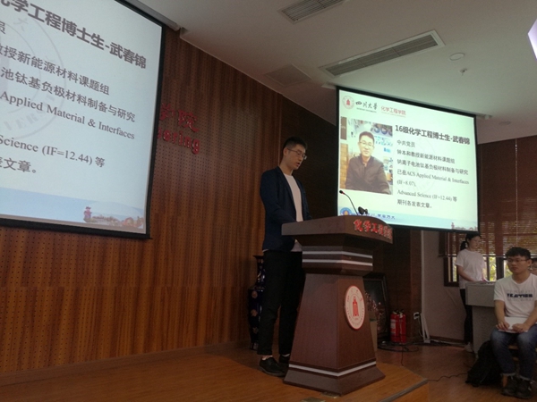 随后,高年级学生代表2016级博士武春锦与新生们分享了他的科研经验。他强调,做科研要沉得下心,且要虚心向导师与师兄师姐请教,认真研读文献,做好文献记录。2018级新生代表杨柯表达了对研究生新生涯的憧憬,并感谢能在william威廉英国官网学习生活,对未来的科研道路也有充足的信心。