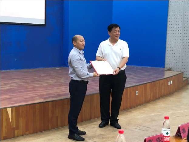 在全院新同学和教师代表的见证下,学院李天友副书记向朱总裁颁发了客座教授聘书并进行了实习基地授牌仪式。李书记代表学院对朱总裁及奥克所有领导表示感谢,并希望这种交流模式成为常态,加强企业和高校的对话,碰撞出更多产学研结合和化工人才培养的火花。