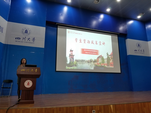 2018年9月21日,我院邀请学工部学生资助中心刘程老师为2018级新生做资助政策宣讲。活动在江安第一教学楼水上报告厅进行,2018级全体本科生以及新生辅导员参加活动。
