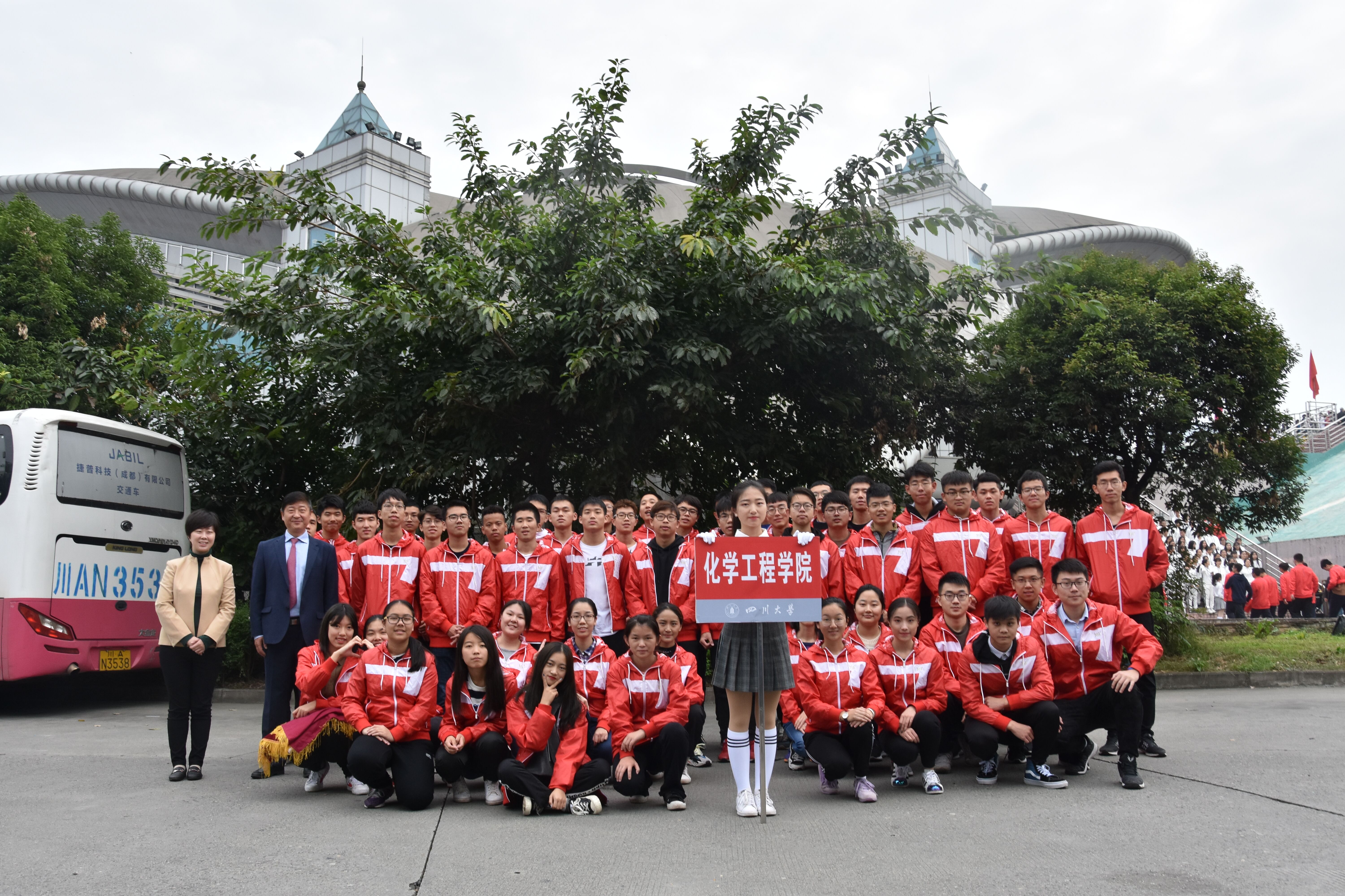 开幕式上,红旗队护卫着国旗、校旗、校徽,以及“海纳百川、有容乃大”的校训和“严谨 勤奋 求是 创新”的校风,庄严入场。我院方阵由48名本科生组成,在院党委庞国伟书记和姜利寒副书记的带领下,伴随着《运动员进行曲》激昂的声音响起,站立时挺拔如松,行走时稳健如钟,红衣如火,目光如炬,昂首挺胸,充满自信的进入会场,展现出新一代化工学子的蓬勃生机。