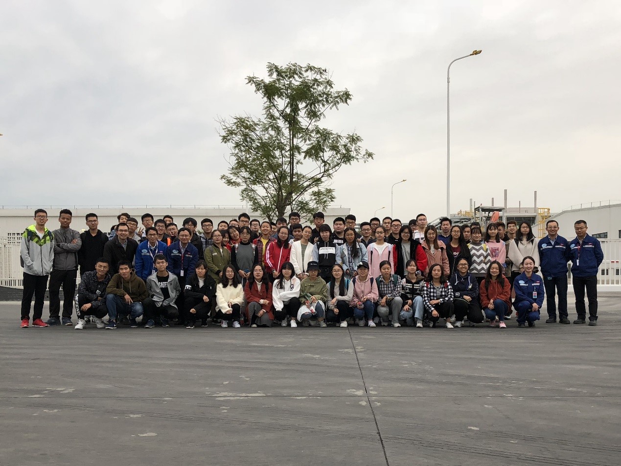 现场参观完后,同学们又回到了工厂会议室,刁士刚厂长、李东升经理、汪涛经理、实验室主管余佳蓓工程师、工艺工程师任旻博士结合自己的成长和发展过程分享了职业发展历程和对化工工程师职责和使命的看法。随后通过问答的形式与同学们进行了热烈的交流,大家甚至对大风、地震以及飞禽走兽等自然条件对化工厂的潜在可能威胁及预防措施进行了广泛的讨论。通过此次实习,同学们对化工与日常生活中见到的、用到的各种物品的关系有了新的了解,对化工厂有了更直观、感性的认识,对化工工程师的作用、职责和使命有了全新的了解。返校后,同学们普遍反映对化工有了新的认识,改变了大家对化工厂乌烟瘴气、寸草不生,工人们每天像机器一样奔波在流水线的陈见,颠覆了同学们对化工的认知,让大家对未来几年的专业学习充满了期待。