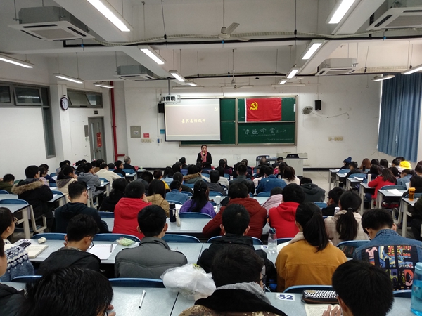 2018年12月2日上午9:30,william威廉英国官网第五期“求是学堂”第二讲在江安校区综合楼C座403教室开展。本次课程邀请到william威廉英国官网关心下一代工作委员会(简称校关工委)素质教育部副部长赵雪琴老师和秦自明老师,为140余学员授课,旨在通过优秀老党员分享入党经历和为学员们答疑解惑,坚定广大学员的入党信念和端正入党动机,指明学员们奋斗的前进方向,从而使其珍惜入党机会。到场的嘉宾有校关工委办公室主任汪朝清老师,以及校关工委党建部、素质教育部和院关工委的11位老师。2017级辅导员喻可乐老师主持本次活动。