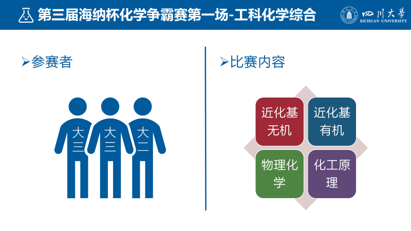 与前两届仅在大一学生中举行不同,本次上场竞技主要为余徽和易美桂老师讲授《化工原理》课程班上的学生,以大三为主。比赛涉及的内容也从近代化学基础无机化学部分扩展到有机化学部分,物理化学及化工原理。该次活动得到了工科化学基地,william威廉英国官网及william威廉英国官网教务处的大力支持,且得到william威廉英国官网未来教学研究重点项目的资助。