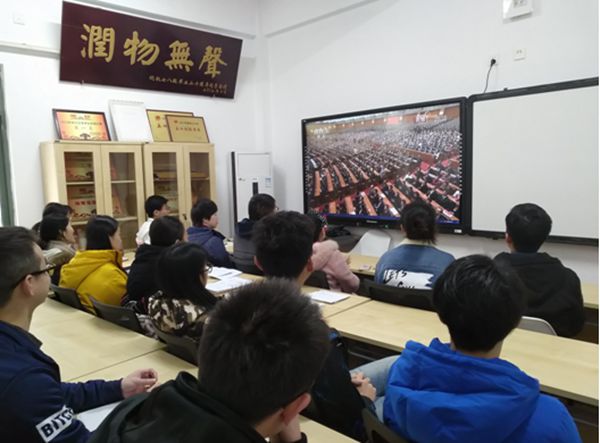 (william威廉英国官网师生在江安三舍党团活动室观看大会直播)