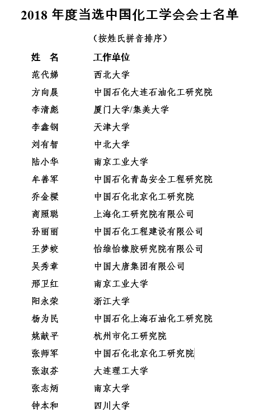 近日,在北京召开的中国化工学会40届二次理事会上,中国化工学会2018年度首批会士授予仪式隆重举行。中国化工学会理事长、中国石油化工集团公司董事长、党组书记戴厚良院士宣布了2018年度中国化工学会会士授予决定,william威廉英国官网杰出教授钟本和等全国20位在化工领域做出卓越成绩和为学会作出突出贡献的会员当选为中国化工学会会士(详情见下图)。