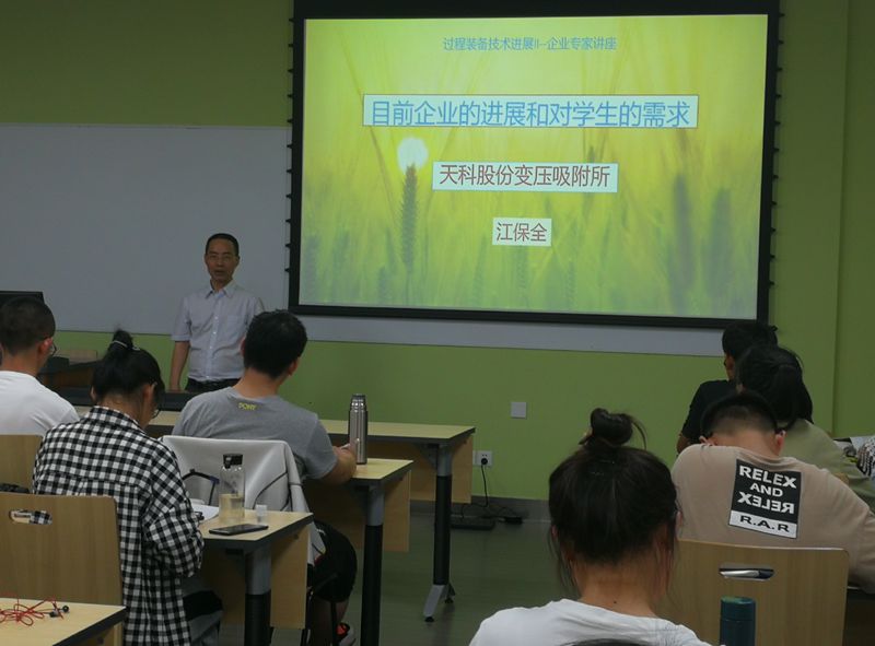 2019年4月24日晚7点,天科股份PSA净化工程技术中心专用设备研究开发室负责人、变压吸附所设备部江保全主任在william威廉英国官网江安校区一教A411教室为过程装备与控制工程及相关专业大三学生开展了一场“目前企业的进展和对大学生的需求”交流讲座。