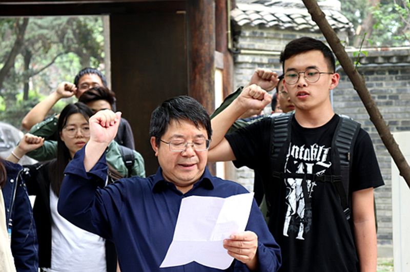 关工委付师申老师也感触颇深:“在新的时代,我们一定要坚持社会主义道路,坚持以习近平新时代中国特色社会主义思想为指导,坚定不移地走中国自己的道路。吃水不忘挖井人。今天中国取得的成果、国际社会地位,和我们今天的幸福生活,是无数革命先辈们艰苦奋斗流血牺牲换来的。我们要缅怀先烈,要崇尚英雄。作为当代大学生,一定要继往开来,在缅怀革命先烈的同时,一定要树立一个远大的志向,做一个有理想,有知识,有抱负,有能力,有担当的时代新人,把老一辈革命者的红旗接过来,抗下去。一定要具备坚定的意念和信心。”
