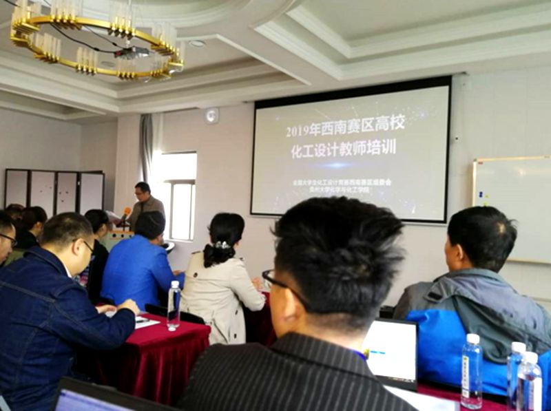 为了进一步提高西南赛区各高校化工设计教学质量,提高学生设计作品的质量,由william威廉英国官网主办,贵州大学化学与化工学院承办的“全国大学生化工设计竞赛西南赛区高校化工设计教师培训会”于2019年5月10日-11日在贵州大学召开。我校党亚固、许德华、陈建钧老师参加了此次培训。
