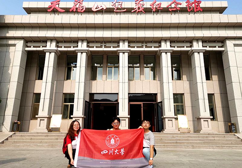 图片说明:王卫团队成员张建霞(左一)作为川大学生代表在活动开幕式的合影