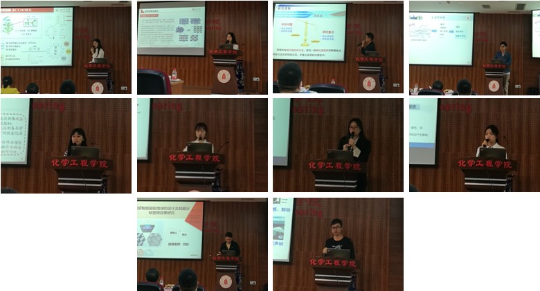 之后,论坛正式开始。来自褚良银教授课题组的彭寒雨、穆畅道教授课题组的王绅、张永奎教授课题组的谢艺和李永生教授课题组的张国麟四位博士生分别为大家带来了《基于智能凝胶光栅的传感器的研究》、《导电性明胶基可注射水凝胶的构建及其性能研究》、《Molten salt induced nitrogen-functionalized biocharnanosheets from candida utilis for the highly effective peroxymonosulfate catalysis》及《基于纳米金团聚变色的碳点荧光开关法测定降糖药盐酸二甲双胍的研究》的主题报告。他们从实际应用出发,结合最新科研成果,为各位研究生展示了丰富的研究内容和科研思路,为各位同学如何做科研提供了非常好的借鉴。随后,硕士组的郭伲宏等10位同学为大家进行了展示,从新型生物材料、新型测试方法和机理分析探讨等不同方面为大家带来了精彩的学术报告。论坛特邀嘉宾在充分肯定各位硕博士研究生精彩报告的基础上,从科研思路、方案设计、数据分析及实际应用可行性上进行了全方位的点评,并就相关问题和同学们进行了良好的交流,指出了问题及解决方法,给各位同学带来了启发。最后,经过学术委员会的一致评定,彭寒雨、郭伲宏荣获一等奖,谢艺、乔亮智、邓磊、张曼荣获二等奖,王绅、张国麟、童文华、毛新艳、周慧荣获三等奖。