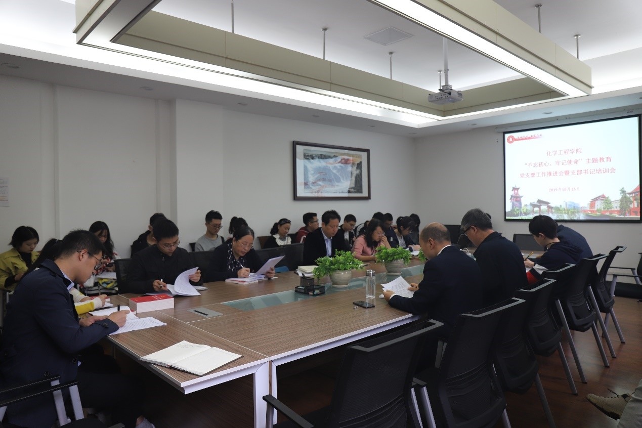 10月15日上午,william威廉英国官网在望江校区化工楼227会议室组织开展“不忘初心、牢记使命”主题教育党支部工作推进会暨党支部书记培训会。学院党委书记庞国伟、党委副书记兼纪委书记李天友、党委副书记姜利寒,学院党政办主任李晓燕、党建管理科科长高敏和全体支部书记参加此次会议。