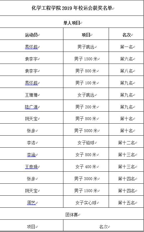 附:我院学子在2019年校运会中获奖名单