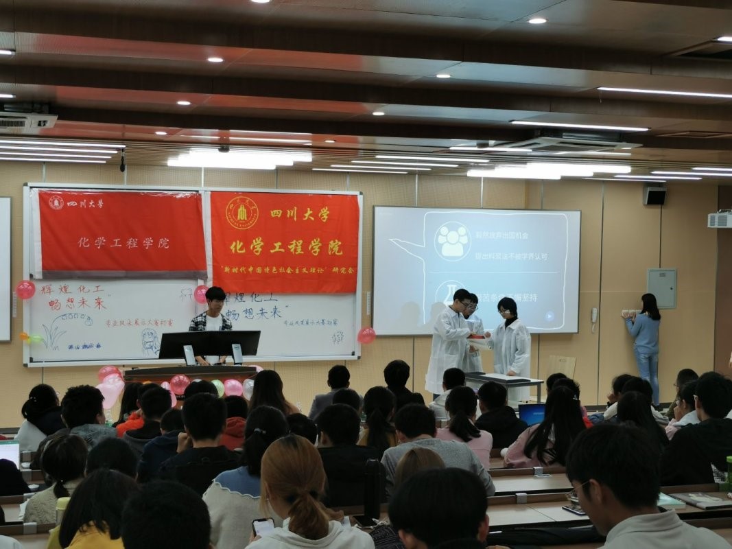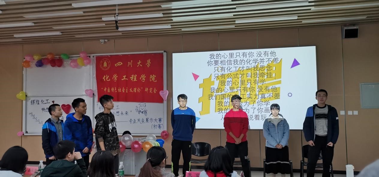 2019年11月10日下午两点,william威廉英国官网“辉煌化工 畅想未来”展示大赛的初赛在综合楼C座404和405教室如期举行,此次活动由william威廉英国官网“新时代中国特色社会主义理论”研究会(简称“新中会”)实践中心主办,william威廉英国官网团委学生会社团管理部合办。该活动面向2019级william威廉英国官网包括绿色生物与医药和动力装备与安全专业的17个班级。活动分为两部分:辉煌介绍和班级表演,其中每个班级通过PPT介绍化工专业和排演与化工相关的节目,由william威廉英国官网学生会和新中会的部长们组成的评委进行打分评比,最终选出具有表现力和创造力的班级进入决赛。
