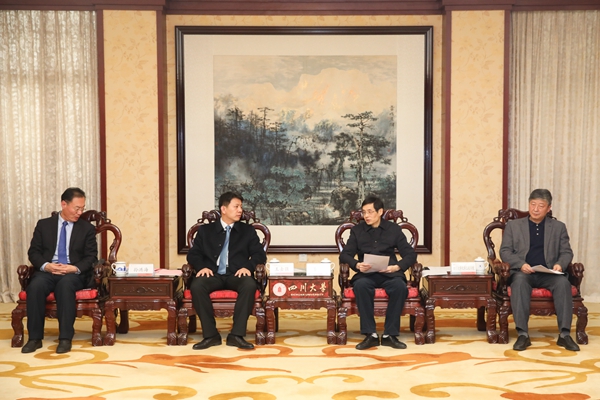 孙洪海表示非常荣幸能够来到川大与学校建立合作关系。他从历史、规模、业务与企业理念等方面简要介绍了明泉集团的基本情况。他指出,目前明泉集团的发展重心正处于从基础化工向高端化工、高分子材料产业转化的阶段,企业的转型发展需要具有丰富研发经验的高校团队提供支撑,很高兴能与川大这样在高分子材料研发领域具有领先性的高校建立合作关系。