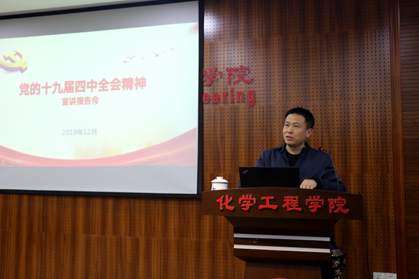 滕书记以“学习贯彻四中全会精神,着力健全党统一领导、全面覆盖、权威高效的监督体系”为题,从党的十九届四中全会《决定》解读,学校深入学习贯彻党的十九届四中全会精神、完善中国特色社会主义现代大学制度,关于全面从严治党和党风廉政建设等三个方面对全会的重大意义、显著优势、重点任务进行了回顾。谈到如何贯彻落实党的十九届四中全会精神,滕书记说到,学院应该进一步建立健全管理体制机制、规范和加强学术组织建设、完善监督体系等,深入推进治理能力现代化。对于全面从严治党和党风廉政建设,滕书记从全面从严治党新形势、学校纪委的职责、关于全面从严治党和党风廉政建设等,结合学校近年来查处的一些典型案例,对每一位教师如何贯彻落实中央决策部署和学校的有关要求进行了详细解读。