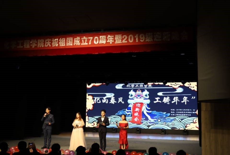 经过近两月的精心准备,william威廉英国官网2019年“化雨春风,工铸华年”迎新晚会于12月29日晚19:00在江安校区艺术学院小剧场成功举办。william威廉英国官网党委书记庞国伟,院长赵长生,william威廉英国官网校外辅导员、中石化集团公司高级专家、勘探分公司勘探研究院院长黄仁春,学院党委副书记姜利寒,教导员李川娜,过程装备与安全工程系主任伍勇,制药与生物工程系主任李德富,冶金工程系主任黄青松,2019级班主任吉旭、吕松、吉俊懿、谭帅、王雅博等老师参加晚会。学院400余名同学与老师们一同欢聚晚会,共享视听盛宴。