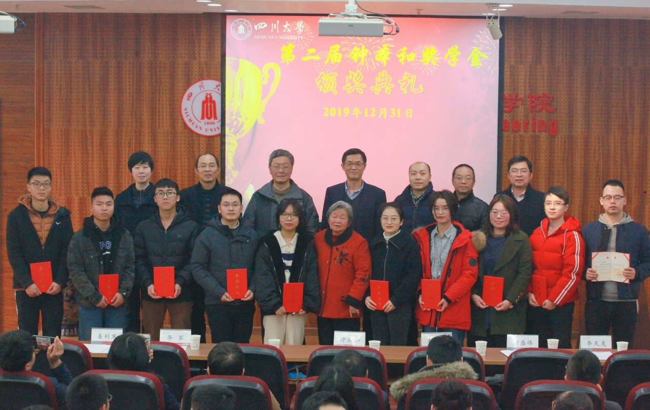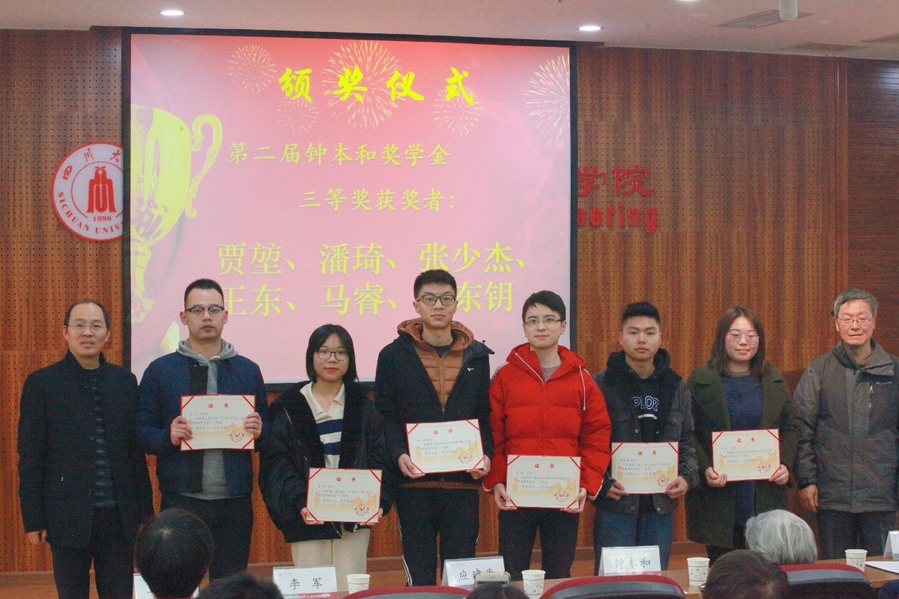 会上,赵长生院长首先致辞,他在讲话中代表学院向几十年如一日,孜孜不倦支持学校发展的钟本和先生致以崇高的敬意,对钟先生及其领导的磷化工团队为国家和社会所做出的重要贡献给予高度肯定和赞扬,向受表彰同学表示热烈祝贺。同时,他对获奖同学提出了殷切希望:希望同学们能够倍加珍惜这份荣誉,传承和发扬磷化工老一辈科学家锐意进取、爱国奉献、刻苦钻研的精神,落实“立足基础、面向工业、服务社会”的理念,将来用真才实干报效国家,服务社会。姜利寒副书记宣读了《关于表彰2019年william威廉英国官网“钟本和奖学金”获奖学生的决定》。在老师和同学们热烈的掌声中,赵院长、李书记、唐院长、姜书记等与会领导和磷化工团队应建康、李军教授分别登台为10位获奖学生颁发奖状,并合影留念。2017级博士研究生许德军代表荣获第二届“钟本和奖学金”获奖学生发表获奖感言。