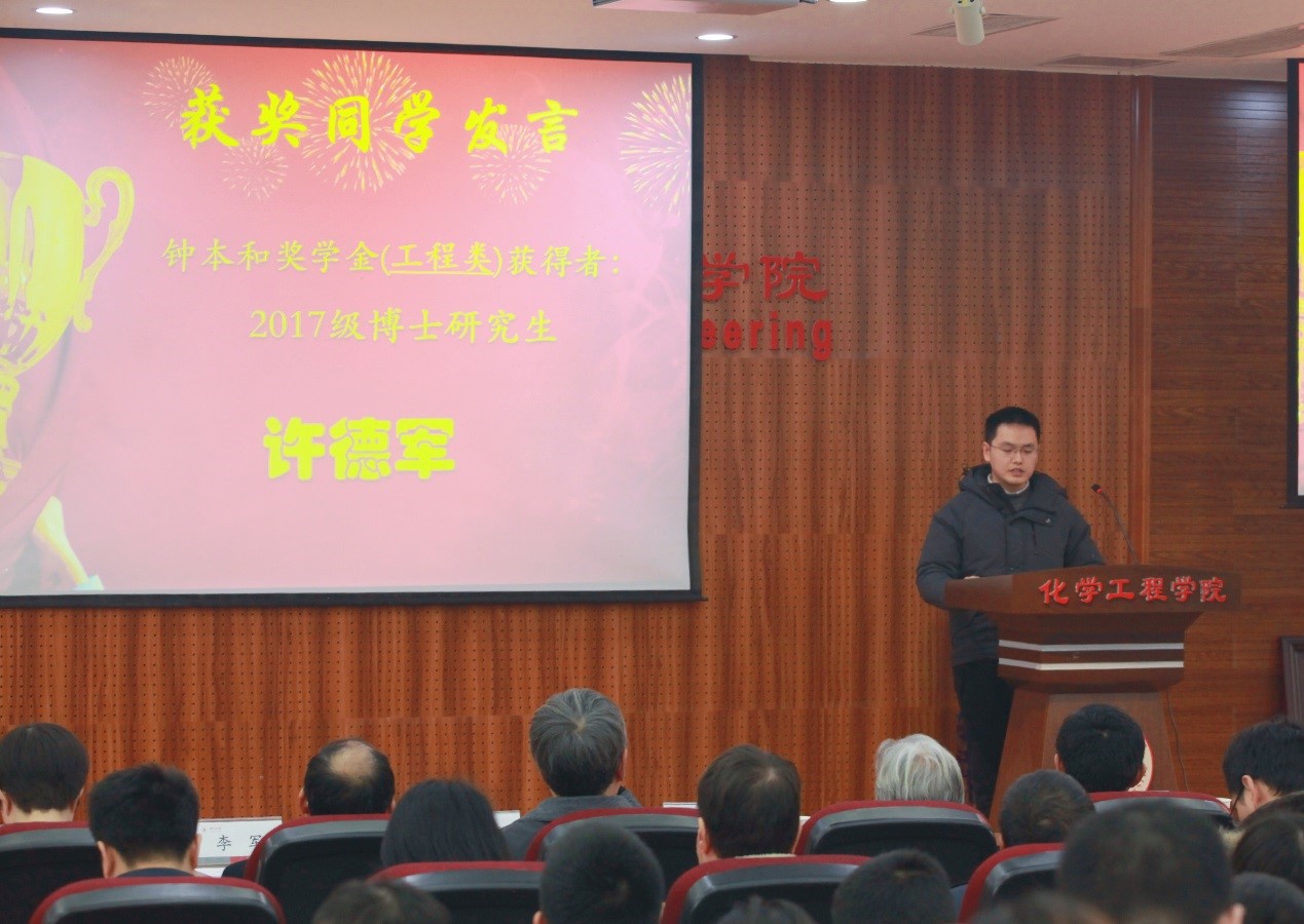 最后,作为“钟本和奖学金”的发起人及主要捐资人,钟本和先生在讲话中代表磷化工团队感谢学校、学院各级领导对该奖学金的支持和帮助,表示“钟本和奖学金”会始终践行磷化工工程理念,不忘初心,砥砺前行,鼓励优秀的化工学子将科研成果不断转化至工程应用,更好的服务社会。