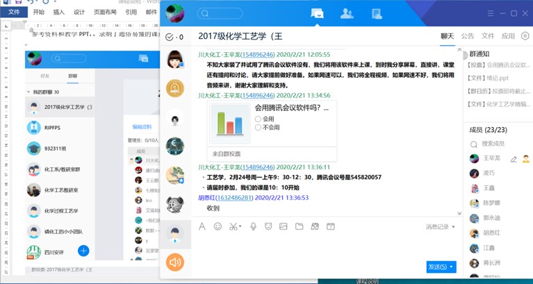 三尺讲台变成虚拟平台,同窗共读也变成了同网共学。为了方便同学们在线学习和交流,学院紧急建立了178个课程QQ群,选课的同学们均已按照要求加入到相应的课程群中。其中,有44门次课程选用在线资源课程授课。在这场教学模式改革的“战役”中,学院全体老师认真学习相关理论知识,充分利用假期时间安排网上授课内容,制作视频课件,等待着与学生的第一视频见面。课程授课采用目前流行的腾讯会议、ZOOM、SPOC、QQ群、微信群等一种或是几种形式结合方式。今天上午,上线的几门专业理论课在同学们的期待中如期上线,同学们对这种方式纷纷表示赞同,取得了显著的效果。老师还在群内定时在线答疑和在线辅导,解决学习当中出现的问题。