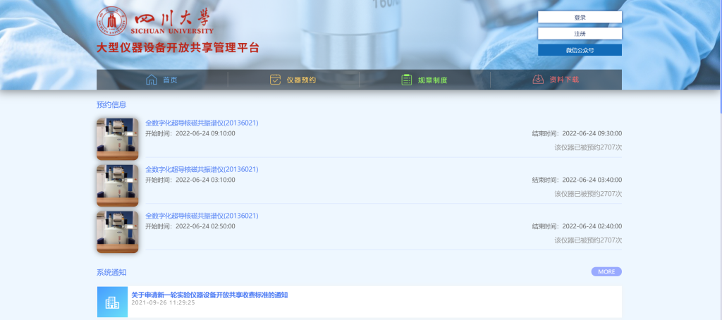 请大家提前试用william威廉英国官网“设备开放共享平台”系统,用户使用手册请查看附件。该系统使用过程中如有问题,可咨询william威廉英国官网实验室及设备管理处邱老师(电话:85404136)。