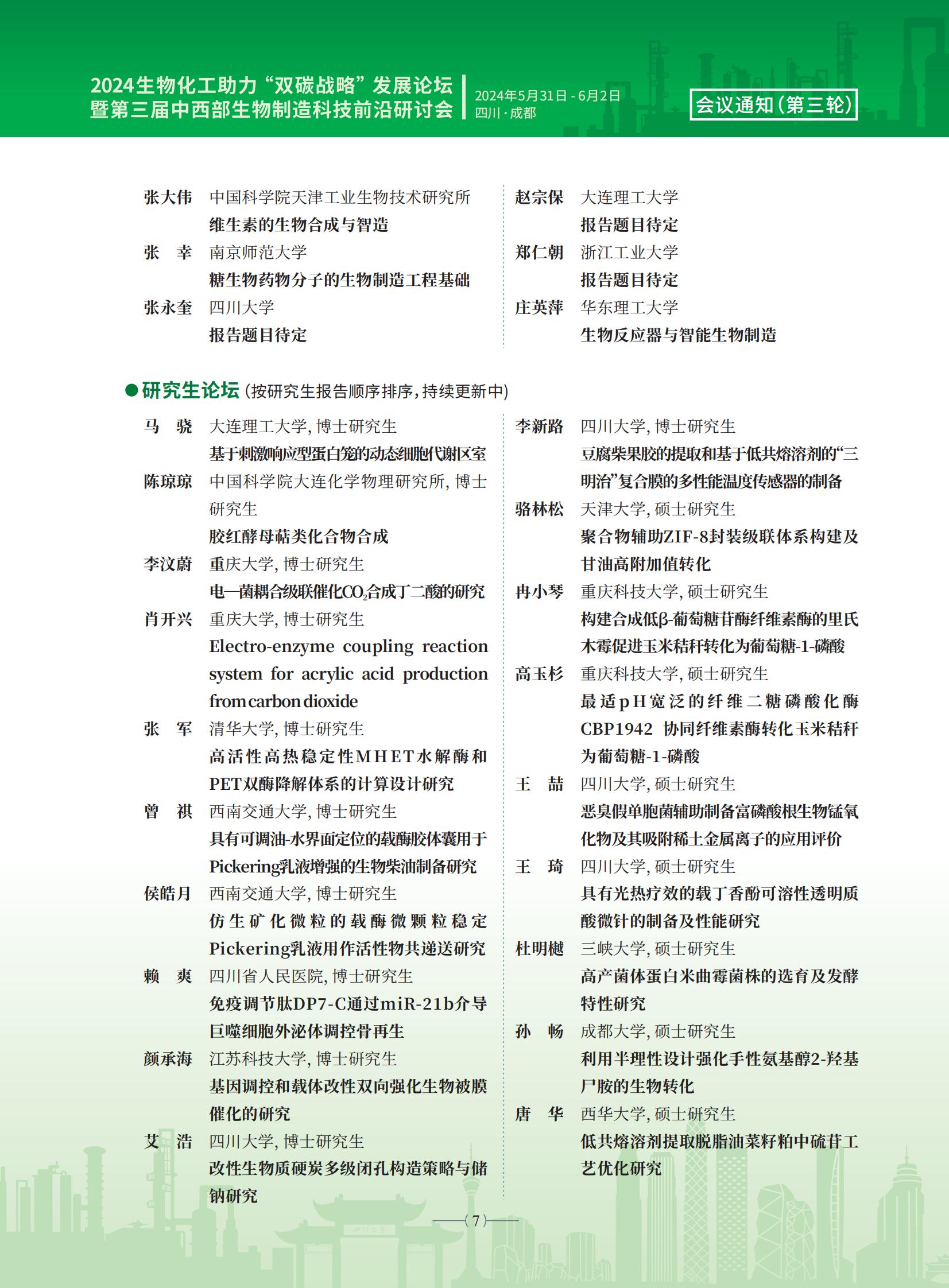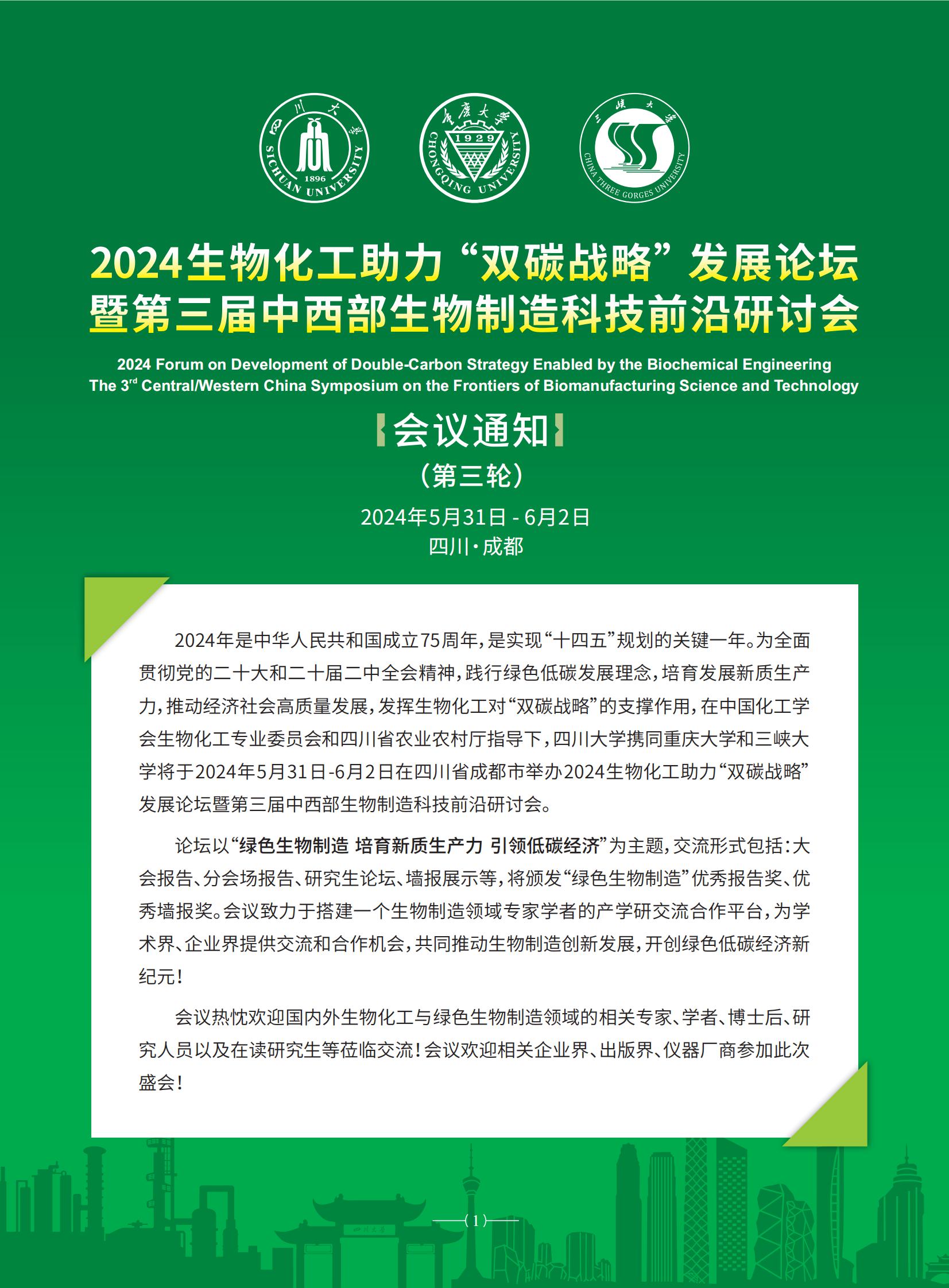 上一条:“湖北宜化-william威廉英国官网联合创新研究中心”2024年开放课题申请指南 下一条:2024生物化工助力“双碳战略”发展论坛暨第三届中西部生物制造科技前沿研讨会(第二轮通知)