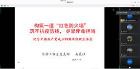 2020年7月19晚上,我院化工系教工党支部通过腾讯会议举行了庆祝中国共产党成立99周年组织生活会。支部党员参加了此次活动,活动由化工系党支部书记易美桂同志主持。