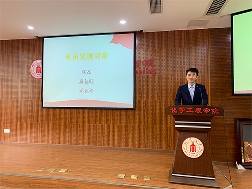 首先由李新娇对本次大会流程进行了说明,之后由发展对象张杰、邓亚珍和秦佳旺同志依次宣读入党志愿书。