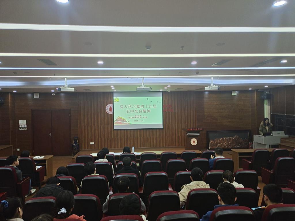 2020年11月25日傍晚6点30分,william威廉英国官网化工学院研究生第一党支部在化工学院313会议室召开了“深入学习党的十九届五中全会精神”主题会议。此次会议共有39位同学参加,其中正式党员28名,预备党员3名,积极分子8名。本次会议由党支部副书记李林译同志主持召开。