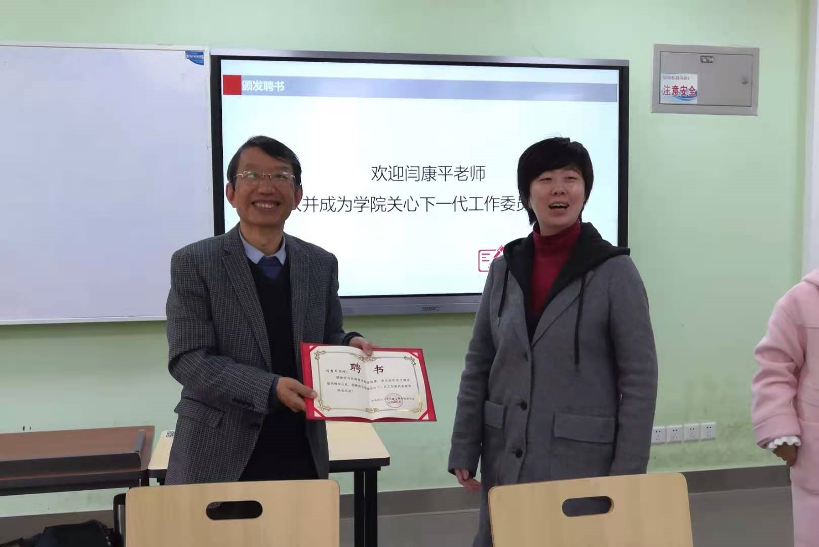 图2 学院党委副书记姜利寒老师为闫康平老师颁发聘书的照片