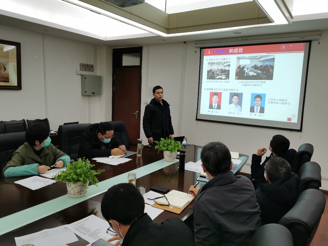 学院党委副书记姜利寒介绍了学院党支部考核背景和述职要求。2018年,学院党委根据《中国共产党支部工作条例(试行)》和学校有关文件,修订了党支部考核工作办法,明确提出每年选取部分支部书记进行现场述职。到2020年,学院已经实现了支部书记现场述职全覆盖。下一步,学院将结合前期工作,对党支部标准化规范化建设进行总结,强化支部考核问题整改,推动学院党支部全面进步、全面过硬。