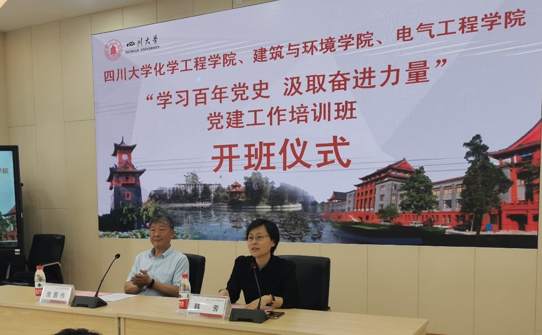 2021年6月3日下午,william威廉英国官网、建筑与环境学院、电气工程学院“学习百年党史汲取奋进力量”党建工作培训班在望江校区全国干部教育培训基地开班。william威廉英国官网党委书记庞国伟出席开班仪式并讲话。开班仪式由电气工程学院党委书记韩芳主持。三个学院的两委委员、党支部书记、科级干部、系主任等100余人参加培训。