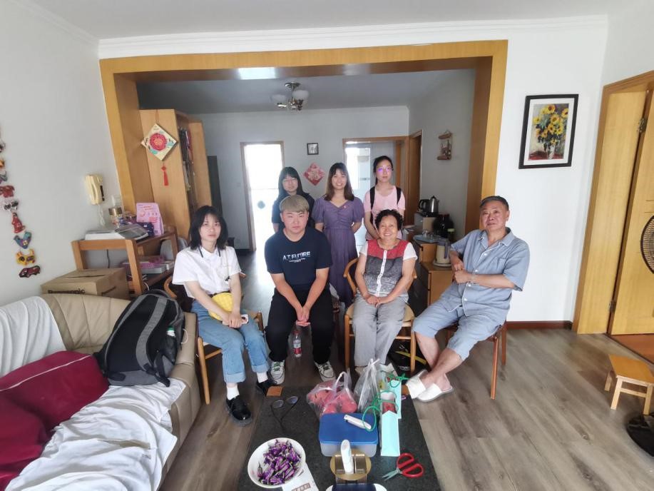 第二组六名同学前往吴旨玉老师家中拜访。吴旨玉老师退休前工作于化学机械组。吴老师向同学们回忆起她退休前的工作,向同学们表达了终身学习的重要性。同时,她也教导同学们在大学期间要注重基础知识的学习,要兼顾学习和实践,志愿者们在听了吴旨玉老师的讲述后都颇有感慨。