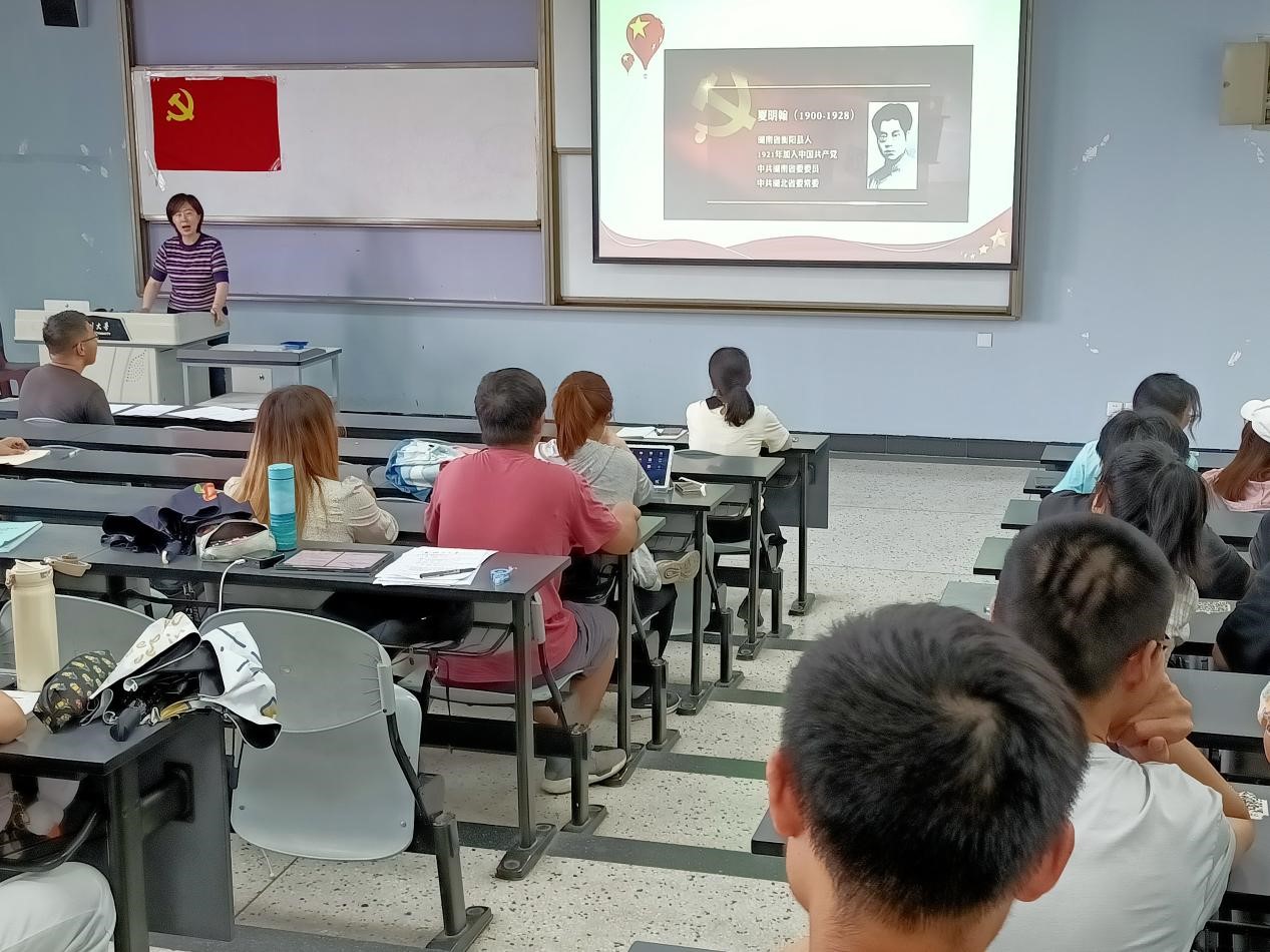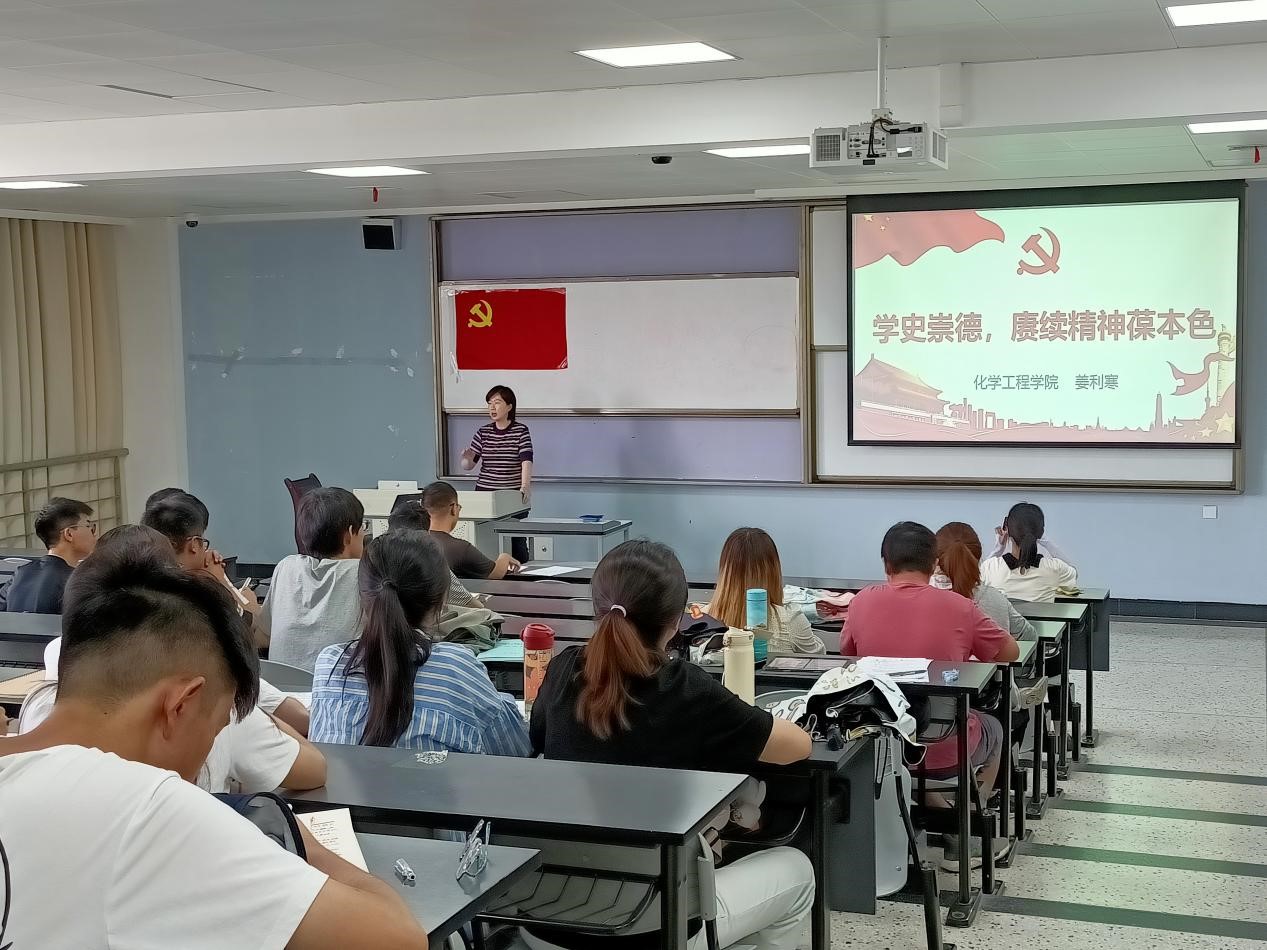 中午十二点四十五分,会议准时开始。会议第一项流程,由姜利寒书记讲授主题为“学史崇德,赓续精神葆本色”的党史学习教育专题党课。姜利寒书记从管理服务、抗击疫情、脱贫攻坚等方面的先进典型切入主题,告诫同学们要“明大德、守公德、严私德”,并与同学们分享了目前热映的《觉醒年代》片段。姜利寒书记在发言中强调:“开展党史学习教育,一项重要任务就是学史崇德,大力发扬红色传统、传承红色基因,赓续共产党人精神血脉,始终保持革命者的大无畏奋斗精神,鼓起迈进新征程、奋进新时代的精气神”。