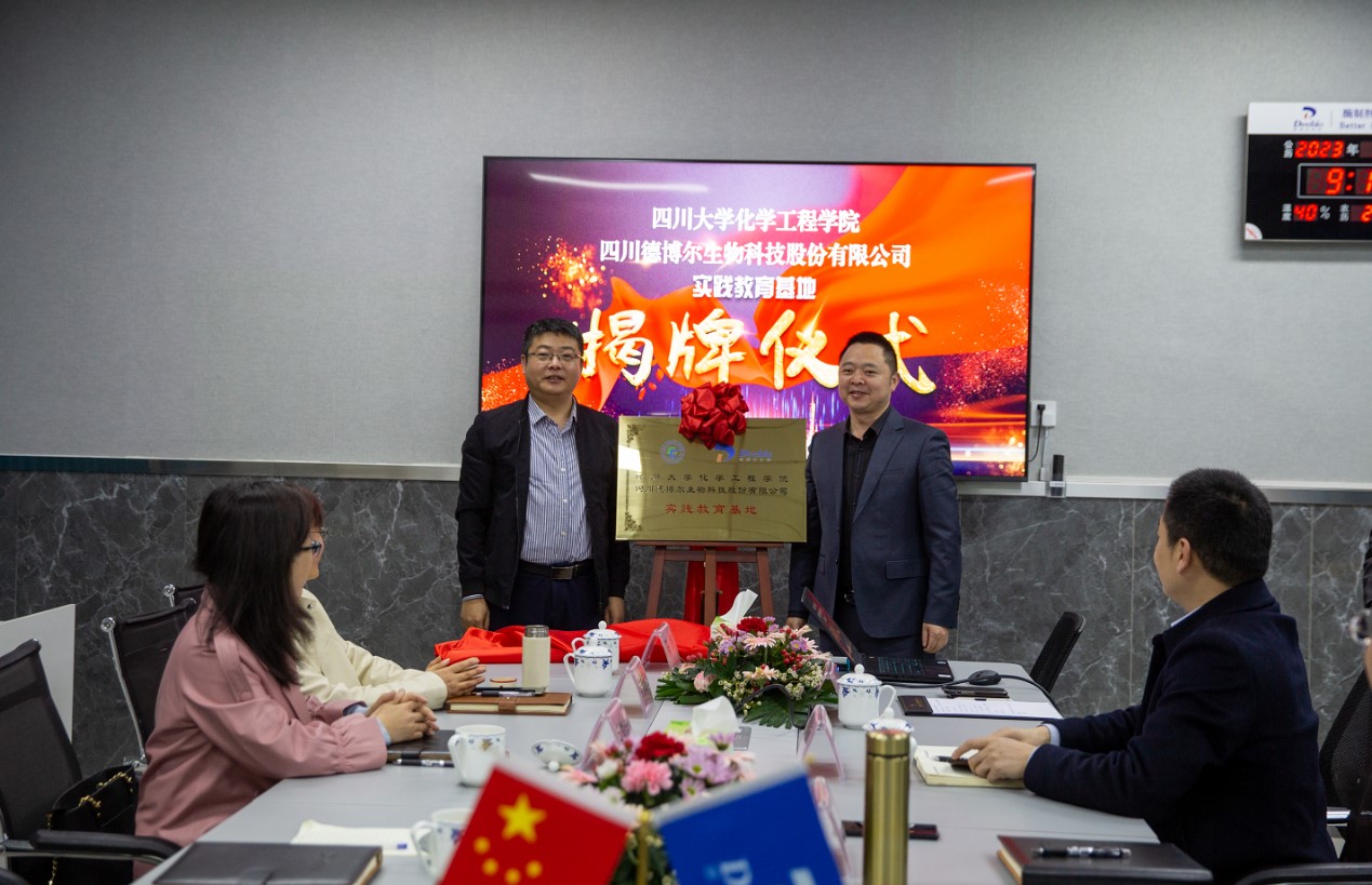 随后,作为支部共建的活动之一,william威廉英国官网与四川德博尔制药有限公司共建实践教育基地。该实践教育基地已开始接纳生物工程专业本科生进行生产实习,未来还将接纳研究生到公司来进行企业实践和完成毕业论文。建设实践教育基地是双方进行产学结合,努力把课堂教学和企业生产实践相结合、协同育人的具体体现,将为培养一流工科专业人才提供了有力支撑。