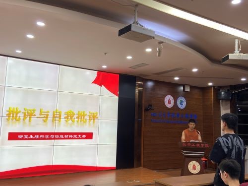 会议过程中,由党支部书记王坡同志主持,党支部开展了批评与自我批评。各支部同志积极参与其中,夏有强同志对自我进行了深刻的批评,他认为自己日常的思想理论学习过程较为欠缺,并为未来的学习实践找寻到了相应的方法。焦锟同志在对自我科研学习过程的问题进行反思的同时,也对党内的郑丽君同志进行了批评,提出了对该党员同志提高工作的主观能动性的期待。