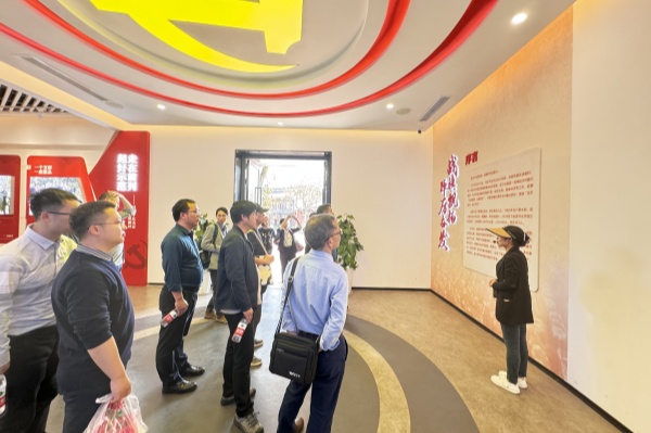 在讲解员的带领下,老师们参观了战旗党建馆,学习了党建引领乡村振兴的战旗路径和战旗经验。多年来,战旗村始终坚持党建领航守初心、勇于探索求突破、创新实践谋发展,在历届村党组织的带领下,实现了集体经济增值、农业增产和村民增收,成为了乡村振兴样本。随后,老师们探访了战旗村特色产业,进一步感悟了“奋勇争先、敢为人先、一路领先”的战旗精神。