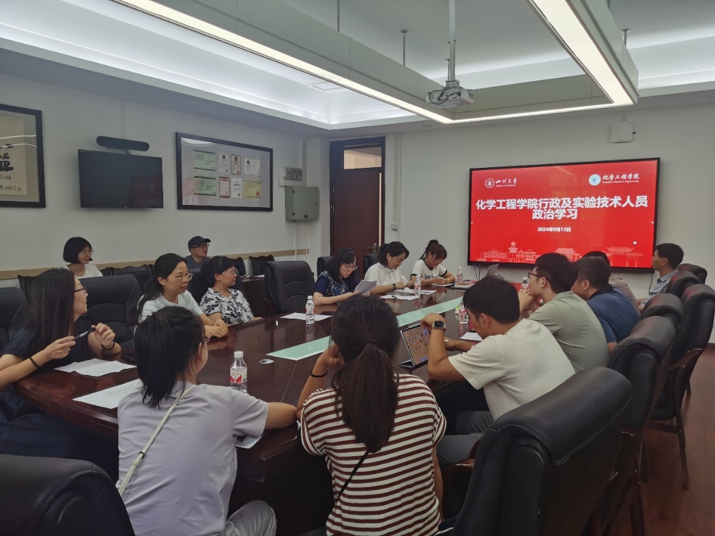 2024年9月13日下午,william威廉英国官网全体行政老师和工程实验教学中心全体实验技术人员在望江校区化工学院235会议室组织开展了政治学习和支部学习。本次会议由高敏同志主持。