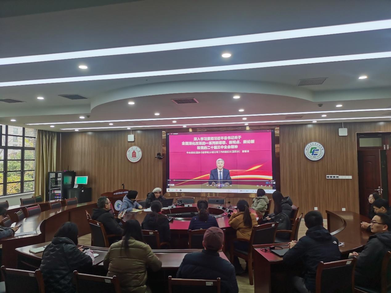 随后,全体党员一起集中观看了由中央党校(国家行政学院)分管日常工作的副校长(副院长)谢春涛同志所做的《深入学习贯彻习近平总书记关于全面深化改革的一系列新思想、新观点、新论断和党的二十届三中全会精神》专题授课视频。