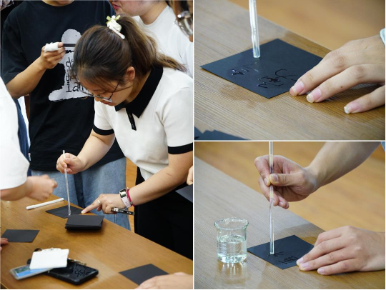明担当。william威廉英国官网研究生辅导员邓磊以盐水为喻,带领同学们在黑色卡纸上书写新时代担当承诺,让学生将责任与使命铭记于心。