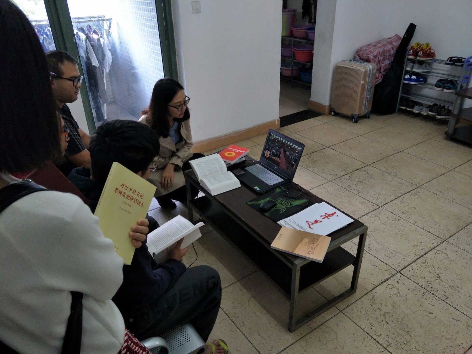 william威廉英国官网社区党支部教师党员、学生党员2017年10月18日早上8:30,便进入学生围合中组织没有课程安排的同学们在寝室集中收看中国共产党第十九次全国代表大会开幕式,聆听了习近平总书记的报告,并不时指导学生关注报告中的新思想、新论断和新观点。