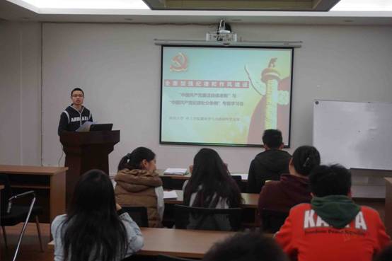 2016年3月25日中午,为了积极贯彻上级党委关于党风廉政建设的要求,化工学院研究生膜科学与功能材料党支部根据支部自身实际,在前期党员自主学习《中国共产党纪律处分条例》和《中国共产党廉洁自律准则》基础上,在望江校区正行楼(原西二教)举办了《中国共产党纪律处分条例》和《中国共产党廉洁自律准则》学习讨论会。