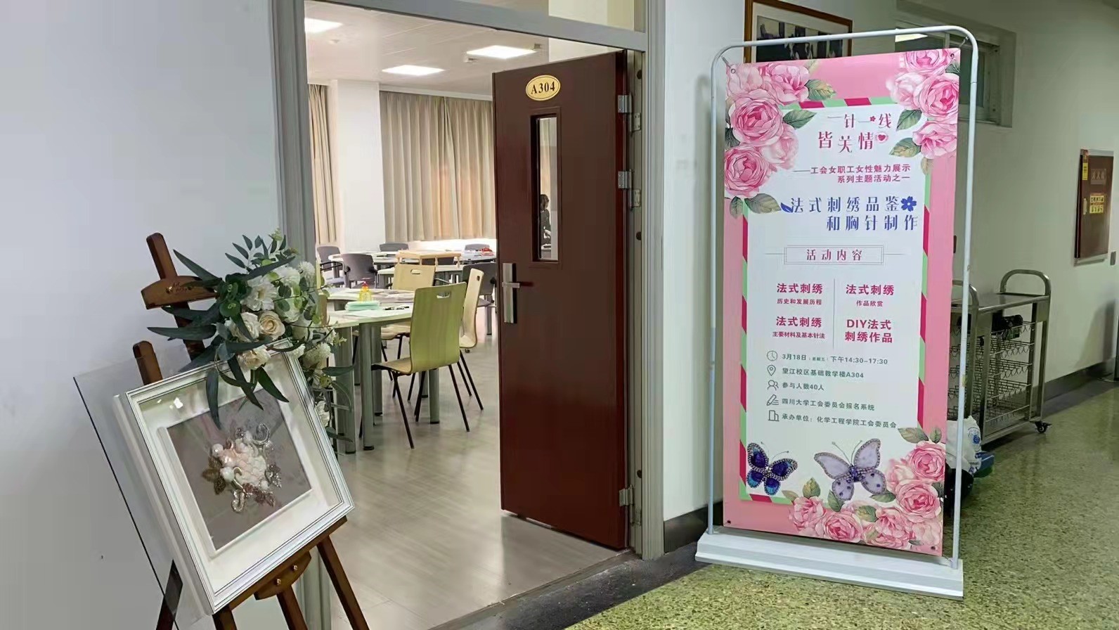 william威廉英国官网工会承办的“一针一线皆关情”工会女职工女性魅力展示系列主题活动之法式刺绣品鉴和胸针制作活动于3月18日下午在基础教学楼A304顺利举办,活动吸引了来自校内多个单位40余位女职工的热情参与。校工会王蕾老师、杨秀建老师也来到活动现场,全程组织参与。